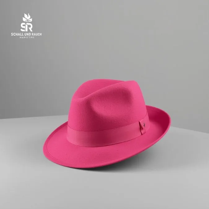 Optisch handelt es sich um einen klassischen, neutral pinken Hut mit klarer Silhouette. Minimalistisch, sachlich, ohne Logo.