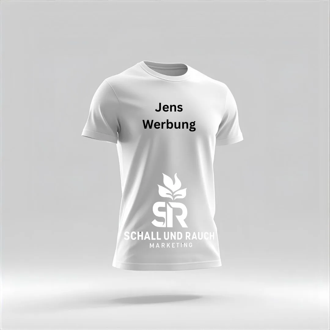 Jens Werbung T-Shirt Weiß. Das Produkt, welches auf die Haut geht.